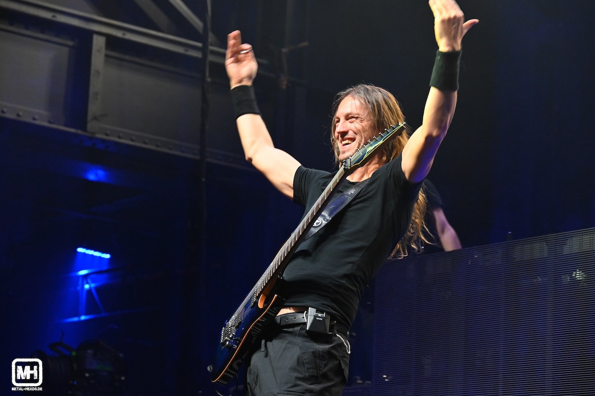 Nach den beiden niederländischen Musikgruppen darf nun die dänisch-schwedische Combo von Amaranthe den Tour-Auftakt-Abend als Headliner beenden. Gesagt, getan. Die Show ist optisch mit den Laser-Effekten zwar nicht mehr so zeitgemäß wie die bärenstarke optische Unterhaltung von Epica. Aber dafür gleichen dies Amaranthe mit brachialer Stimmgewalt an gleich drei Mikrofonen mehr als aus. Dieser Dreiklang – bestehend aus dem Tenor-Shouter Nils Molin, der bezaubernden Sopran-Stimme von Elize Ryd sowie dem gutturalen Growler Michael Sehlin – macht ordentlich Alarm da auf der Bühne. Live klingen Amaranthe immer ein wenig wie ein Mix aus Symphonic Metal, Metalcore, Rap und HipHop. Spannend, laut, hart – und offenbar nicht den Geschmack einiger Charlotte Wessels– und EPICA-Fans. Denn ein paar von denen machen sich bereits nach dem 6. Song auf in Richtung Ausgang. Band-Mitbegründer, Keyboarder und heute Abend vor allem E-Gitarrist Olof Mörck bekommt hiervon zum Glück ebenso wenig mit wie die solide Rhythmus-Fraktion, bestehend aus Drummer Morten Løwe Sørensen und Bassist Johan Andreassen.