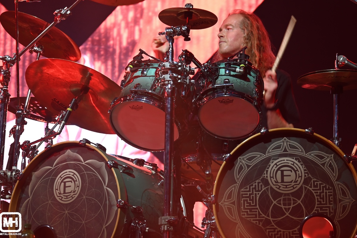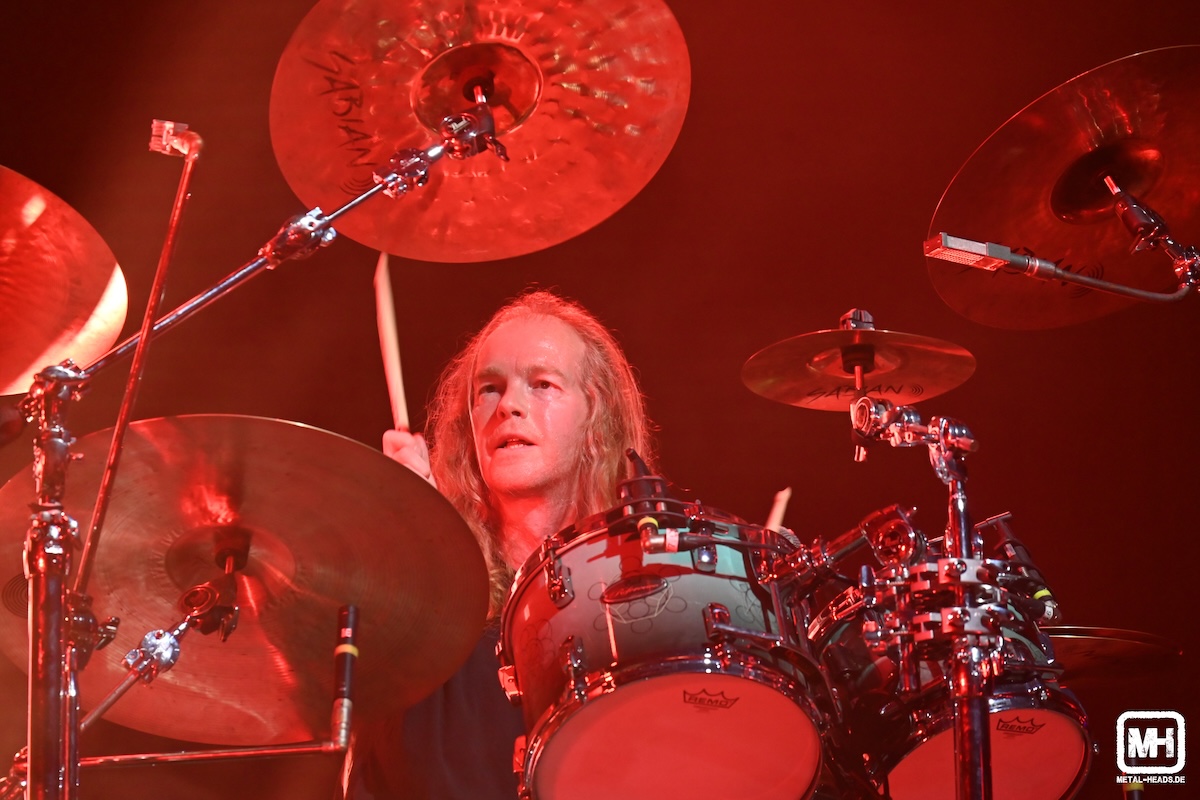 Drummer Joey Marin de Boer verhaut gewohnt solide seine Trommelfelle und hat bei der ganzen Arbeit hin und wieder sogar einen Grund zu schmunzeln (siehe Fotostrecke unten). Für uns wirkt die Truppe sehr homogen. Nach sieben Songs ist jedoch – leider, aus Sicht der Hardcore-Charlotte Wessels-Fans – erst einmal Feierabend. Vorerst aber nur. Die durchtrainierte Frontfrau bedankt sich artig auf Deutsch für die tolle Unterstützung der ersten Reihen und feuert zum vorläufigen Abschied noch einmal das gesamte Publikum für den Gig der beiden folgenden Co-Headliner an. Dass Charlotte Wessels kurze Zeit später bei Epica ein Duett mit ihrer Freundin Simone Simons singen wird, weiß ja zu diesem Zeitpunkt noch niemand. Wir hören überall in der Halle ein wohlwollendes Feedback zu Charlotte Wessels (Homepage), die weitaus mehr ist als ein schnöder Support-Act.